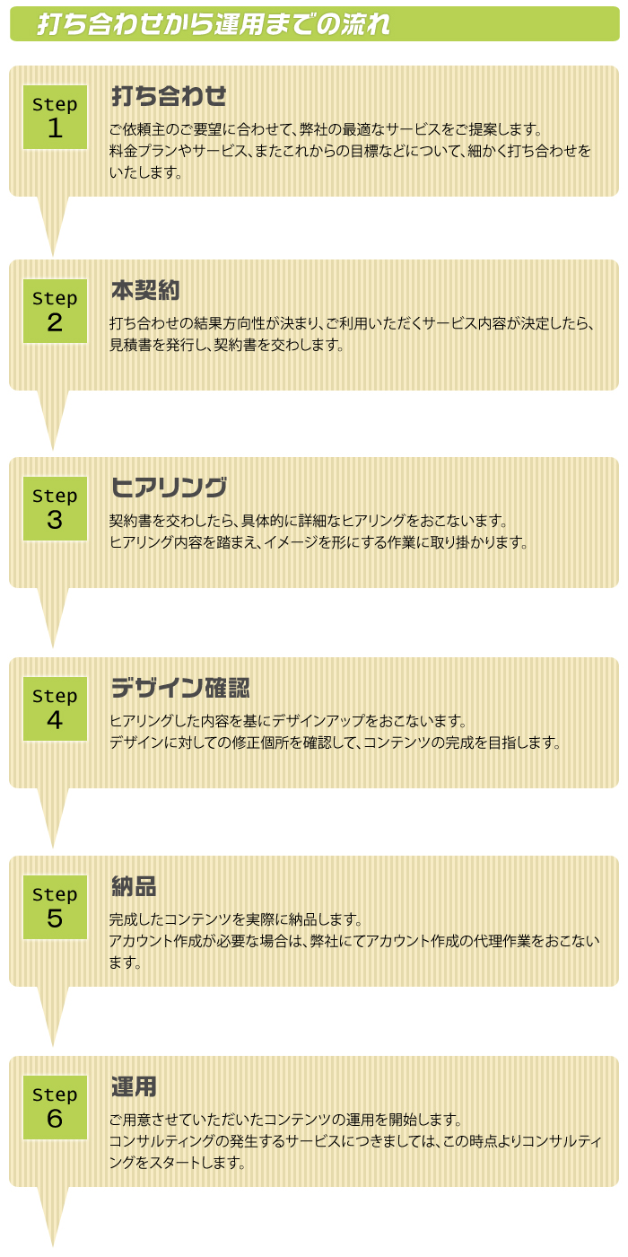 お問い合わせをいただいた後、ご契約からサービス導入、運用までの流れをご説明いたします。